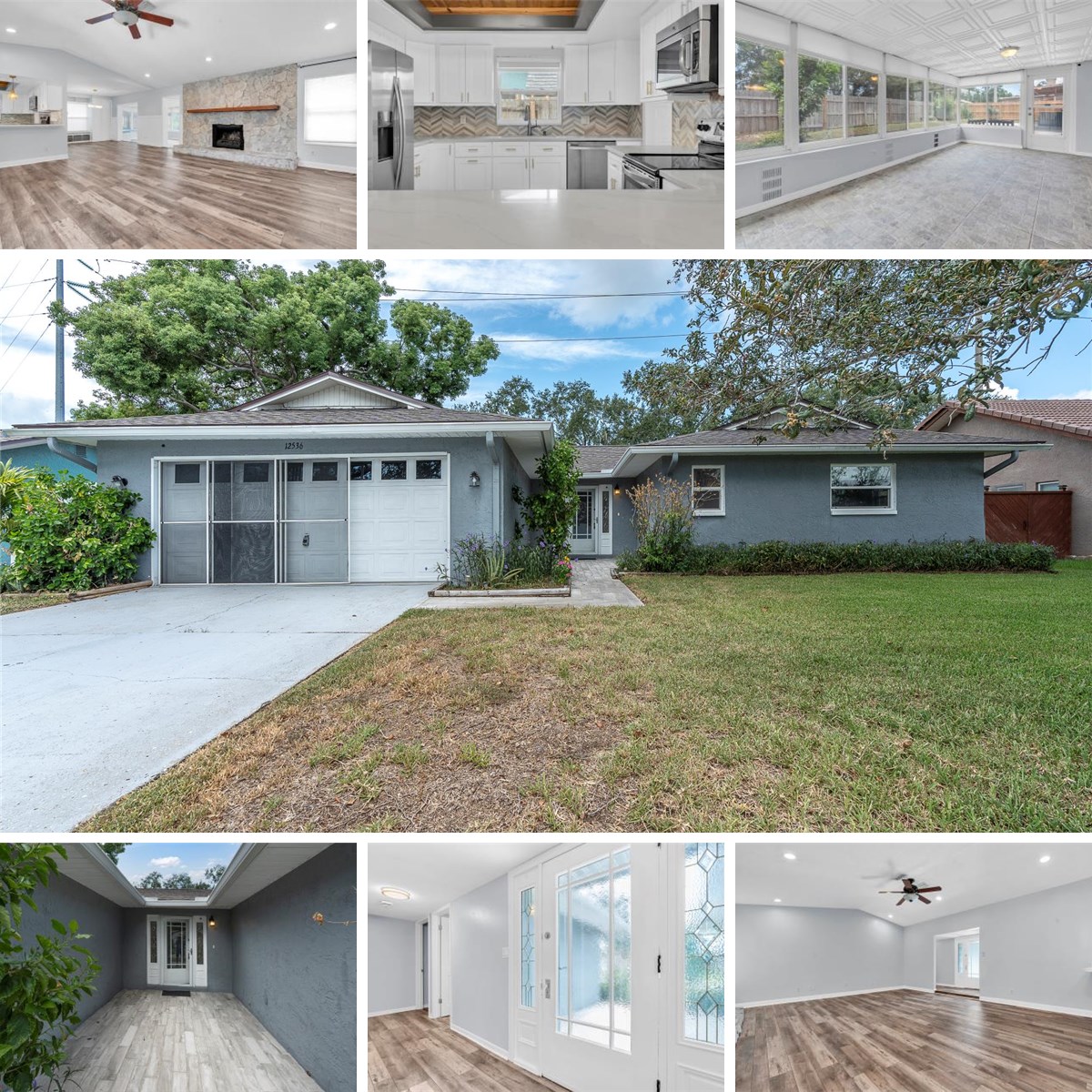 Motivated Seller – Exceptional value in the sought-after Avon Ridge subdivision - NO HOA and located in Flood Zone X, a NON-EVACUATION ZONE. This CONCRETE BLOCK home offers peace of mind and timeless Florida charm just minutes from Indian Rocks Beach. Whether you're looking for a full-time residence, a seasonal getaway, or a smart investment opportunity, this private oasis checks every box. Step inside to an OPEN-CONCEPT LAYOUT with tile flooring throughout, complemented by wide-plank luxury vinyl in key living areas. The REMODELED KITCHEN features white shaker cabinetry, quartz countertops, a chevron backsplash, Whirlpool stainless steel appliances, and gold-accent hardware, all beneath a custom wood-inlay ceiling with designer lighting. This 2-bedroom, 2-bath retreat includes a BRAND-NEW ROOF (2025), FULLY PAID 5kW SOLAR PANEL SYSTEM, and 2018 HVAC, offering ENERGY EFFICIENCY and long-term value. A natural stone fireplace adds warmth and character, while the sun-filled Florida room provides flexible space for work, wellness, or play. The private primary suite includes a walk-in closet and space for additional wardrobe storage. The en-suite bath showcases DUAL SHOWER HEADS and sleek tilework. The spacious secondary bathroom features a tub/shower combo and adapts beautifully to any lifestyle need. Outdoors, enjoy a covered patio and FENCED BACKYARD—ideal for entertaining, gardening, pets, or future pool plans. A rear gate offers direct access to the Pinellas Trail, with nearby parks and lakes for outdoor adventures. Tucked away in a quiet neighborhood yet close to Largo Mall, Seminole City Center, golf courses, dining, and top-rated beaches. Convenient access to major medical facilities and airports enhances the appeal for full-time residents, seasonal owners, or investors. This home blends location, lifestyle, and financial flexibility—ready for its next chapter. Schedule your private showing today!