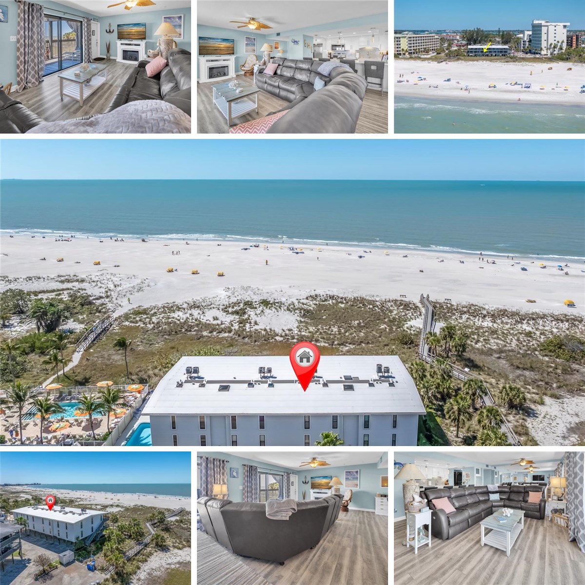ULTIMATE BEACHFRONT LIVING ON TREASURE ISLAND directly on the beach! Welcome to your dream coastal escape on the pristine shores of Treasure Island, where vibrant beachfront energy meets the serenity of panoramic Gulf views. This is more than just a home—it’s a lifestyle. EXCELLENT INVESTMENT OPPORTUNITY – SHORT-TERM RENTALS ALLOWED! With no minimum rental period, this income-producing vacation rental offers incredible flexibility and earning potential. (Currently condo used as a second home 5 months per year by owner, and occasionally leased $3500 per WEEK high season/$2500 per WEEK off season)