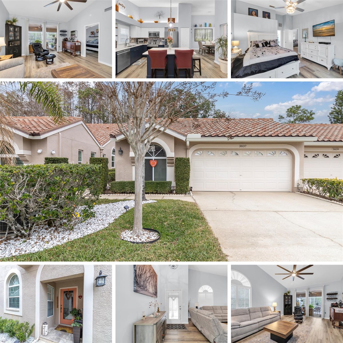 PRICE IMPROVEMENT- Welcome to your serene, move-in-ready villa at Salem Village in the highly desirable gated community of Ridgemoor, Palm Harbor — a perfect blend of low-maintenance luxury and Florida's natural beauty. This beautifully updated 2-3 bedroom, 2-bathroom residence (1,659 sq ft) plus a versatile den/office/bedroom ( easily convertible to a THIRD guest bedroom ) features an attached 2-car garage and backs onto peaceful conservation with no rear neighbors, offering stunning views of wildlife including deer and turkey, plus a glimpse of a tranquil pond. Step inside to discover a light-filled, open-concept layout with soaring vaulted ceilings, plantation shutters, and fresh new paint throughout. The split-bedroom design ensures maximum privacy, while new luxury vinyl plank flooring flows seamlessly from room to room (no carpet!).The heart of the home is the completely renovated kitchen, boasting new cabinetry, a stylish center island, elegant countertops, tiled backsplash, modern lighting, and sleek stainless steel appliances — ideal for casual dining or effortless entertaining. * Additional highlights include: Updated master bath with refreshed shower and vanity * Spacious master suite with walk-in closet and direct access to the lanai * New ceiling fans throughout * Generous closet space, including a separate laundry room * New pavers on the front porch and expansive patio * Relax and unwind in your large screened lanai, perfect for morning coffee amid nature or evening relaxation. An inviting atrium adds extra charm and natural light. As part of the pet-friendly, non-age-restricted Salem Village (within the broader Ridgemoor master community), enjoy maintenance-free living with a monthly HOA fee of $398 covering exterior maintenance, painting, Mediterranean-style barrel tile roof replacement, cable/internet, trash removal, and more. Residents have access to fantastic Amenities: Heated community pool, park, playground, basketball court, clubhouse, dog park, fitness center, racquetball courts, tennis courts, recreation facilities, sidewalks, trails, water access, and waterfront areas. Pets (cats and dogs) are allowed, and golf carts are permitted. This exceptional villa offers the ideal combination of modern upgrades, privacy, and resort-style community living in one of Palm Harbor's most sought-after East Lake areas. A true must-see — schedule your private tour today!