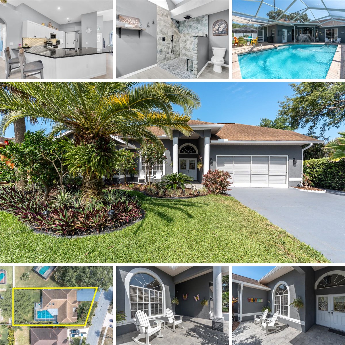 Welcome to your private Florida retreat in the heart of New Port Richey. This beautifully updated 3-bedroom, 3-bathroom pool home blends modern upgrades with relaxed, tropical living. From the moment you arrive, you’ll notice the lush, tropical landscaping and newly paved front porch, creating a warm and inviting first impression. Step inside to discover brand-new luxury vinyl flooring throughout some of the main living areas, complemented by fresh new carpet for added comfort in the bedrooms and living room. The fully remodeled kitchen is a standout feature, showcasing new cabinetry, sleek granite countertops, and ample space for both everyday living and entertaining. Each of the three full bathrooms offers convenience and flexibility, ideal for families, pool parties, or hosting guests. Now let us step outside to your own beautiful, private oasis—featuring a sparkling pool with a screened-in lanai, covered seating spaces, perfect for year-round enjoyment without the hassle of pests. The backyard is truly a showpiece, filled with an abundance of tropical plants and vibrant flowers, all enclosed by a brand-new vinyl fence for added privacy. The spacious patio offers the perfect setting for relaxing evenings or entertaining guests. Ideally located near a Publix shopping center, dining, and top-rated schools, this move-in-ready home offers the perfect combination of style, comfort, and Florida lifestyle living. Last but not least, the entire interior was freshly repainted in 2024 and the exterior of the home in 2025. The home also includes a whole home water filtration system with water softener, and a carbon air purifier with ultra violet light for the HVAC system. This amazing home will not last long! Schedule your private showing now.