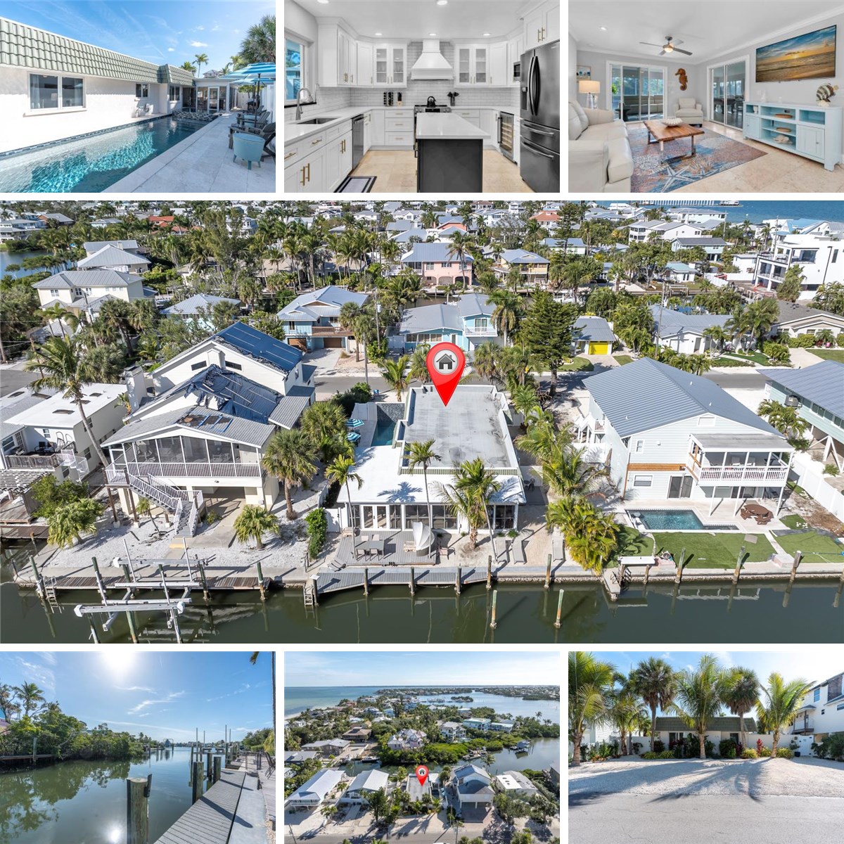 “Anna Maria Oasis” is a Bimini Bay Coastal Classic, perfectly positioned on the coveted north end in the City of Anna Maria. With deep-water access directly from your backyard, no bridges to the bay or the Gulf of Mexico, and a 50’ dock with pilings already in place for lift installation, this property is truly a boater’s and fisherman’s paradise. Originally built in 1972, the home was completely transformed in a top-to-bottom remodel in 2025, blending modern luxury with timeless island charm. No detail was overlooked. Highlights include imported Filipino shell stone flooring throughout, all-new drywall, insulation, plumbing, electrical, paint, fixtures, kitchen, and fresh landscaping. The living space was thoughtfully expanded with energy-efficient mini-split systems, increasing the under-air square footage from 1,582 sq ft to approximately 2,131 sq ft, offering enhanced comfort and flexibility. Additional upgrades include a new pool (2019) and new roof (2020). Designed for effortless indoor-outdoor living, this home is ideal for entertaining, launching a sunset cruise, or unwinding while taking in tranquil water views. This one-of-a-kind island property delivers the ultimate coastal lifestyle. Don’t miss this rare opportunity to own waterfront luxury in the heart of Anna Maria—where elegant design meets laid-back island living. Currently an active vacation rental please see remarks for link to the site.